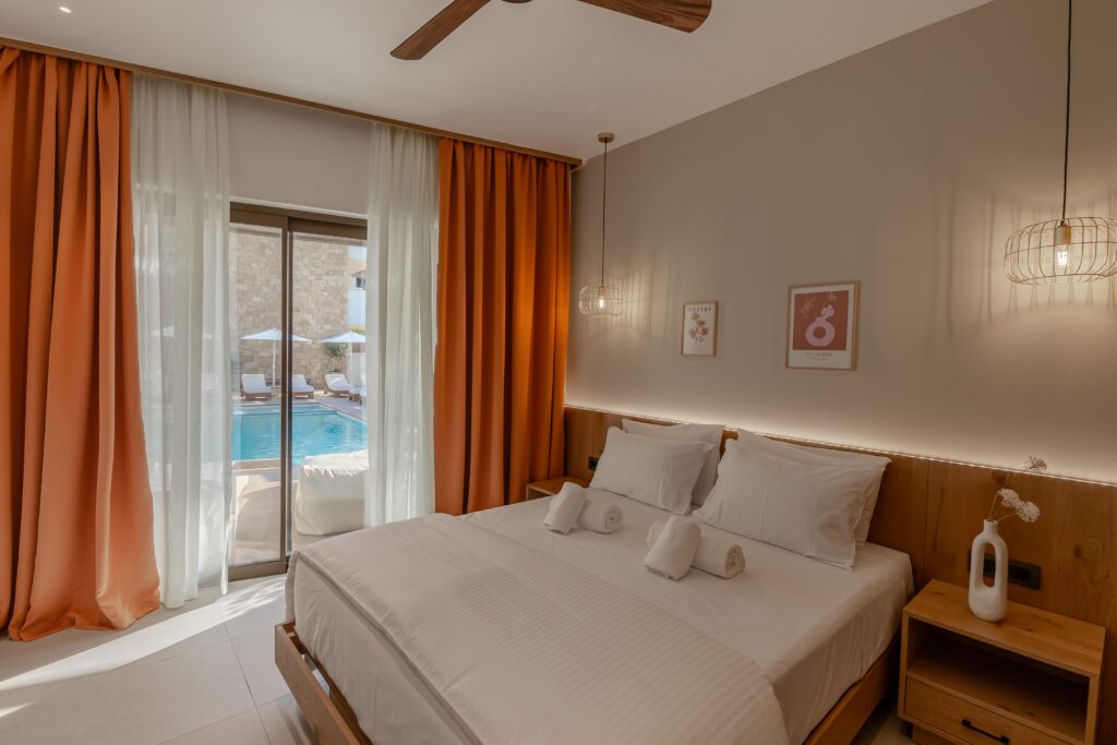 Our premium Signature Pool Suite offers an exceptional experience in Kissamos. Featuring direct views of our swimming pool and enhanced amenities, this spacious suite provides a sophisticated retreat. Elegantly furnished with attention to detail, the Signature Pool Suite represents our finest offering for discerning travelers exploring Crete.